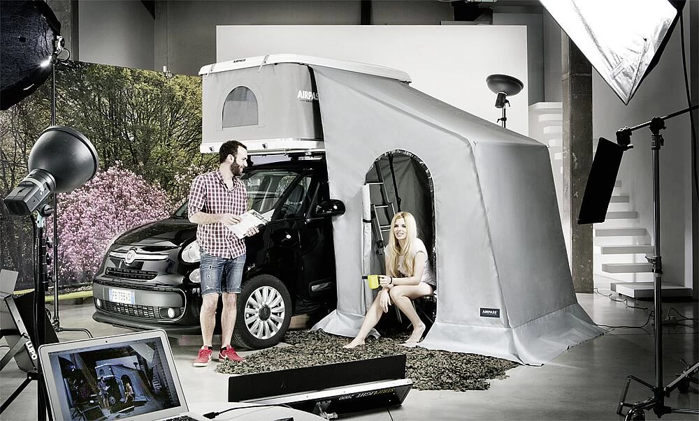 Das AirPass Vorzelt bietet zusätzlichen Raum und Privatsphäre. Das Vorzelt kann in ca. 5 Minuten auf- oder abgebaut werden und lässt sich im AirPass Dachzelt verstauen. Beidseitig montierbar.