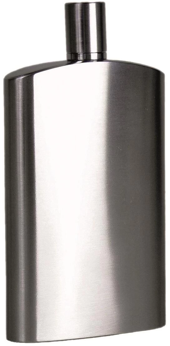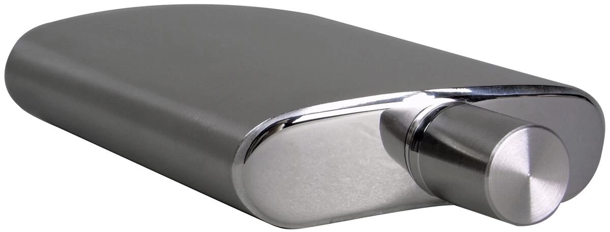 Sehr edler Flachmann aus gebürstetem Edelstahl mit polierten Schultern. Klares, sehr modernes Design. Robust und langlebig mit Schraubverschluss.