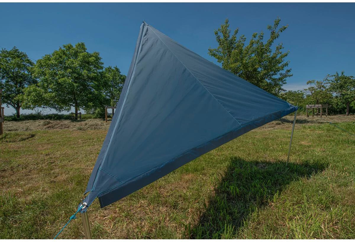 Ein Leichtgewicht mit nur 950 g und kleinem Packmaß. Hergestellt aus einem robustem 150 D Polyester Gewebe, PU beschichtet mit einer Wassersäule von 1500 mm, wasserdicht, nahtversiegelt und mit extra Reißverschluss-Abdeckklappen. Das Gewebe ist mit einem UV-Schutz 60 (Standard 801) ausgerüstet. Der UV- Standard 801 ist eines der weltweit strengsten Prüf- und Zertifizierungssysteme für Beschattungstextilien.