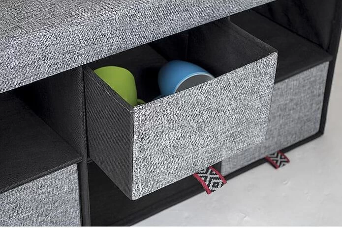 Eine trendige Aufbewahrungsbox mit 6 Ablagefächern. Geeignet für Aufbewahrungszwecke, aber auch zum Sitzen.