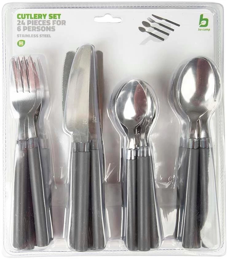 Ein robustes 24-teiliges Besteckset. Dieses praktische Set ist für 6 Personen geeignet und besteht aus 6 Messern, 6 Gabeln, 6 Löffeln und 6 kleinen (Tee-)Löffeln. Hergestellt aus Edelstahl mit einem Kunststoffgriff und das Set hat daher eine lange Lebensdauer.