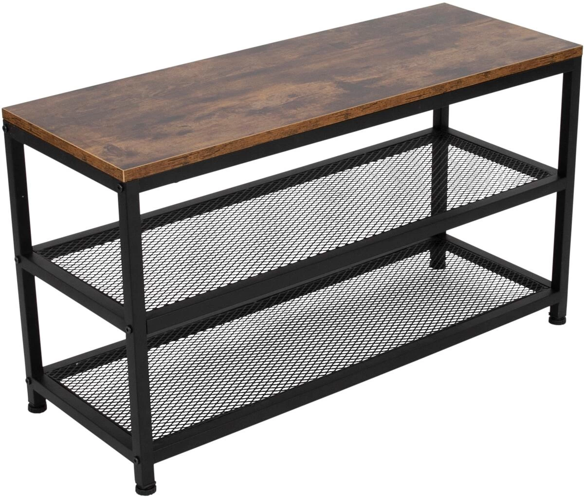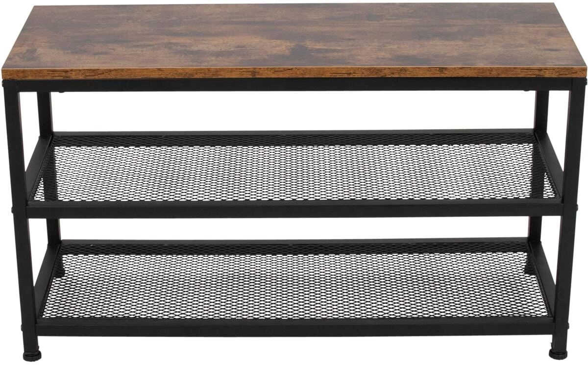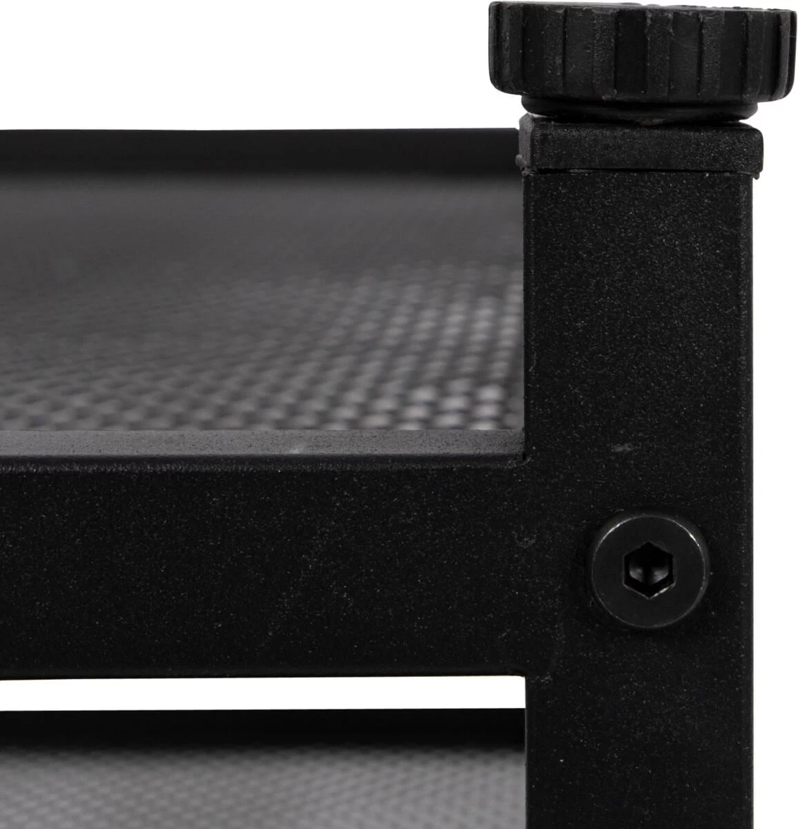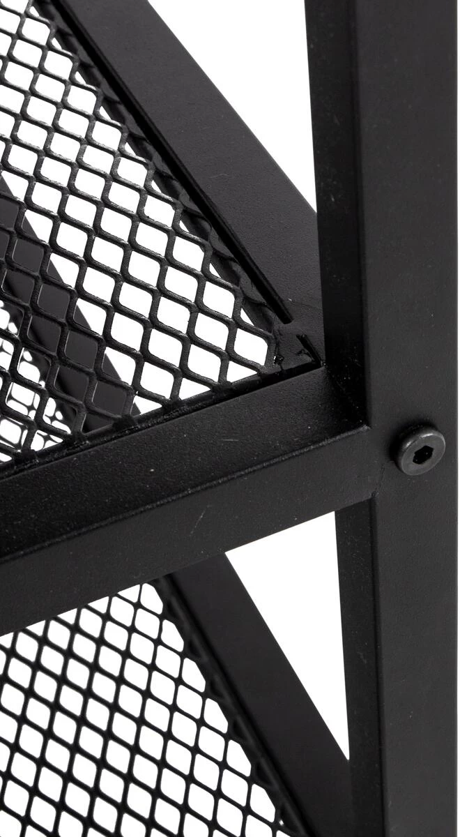 Ein stilvoller Schrank aus der Industrial-Kollektion. Der Schrank hat eine Platte in MDF-Holzoptik und einen stabilen Stahlrahmen. Ausgestattet mit einem ausziehbaren Korb. Die erste Schicht des Schranks bietet zusätzlichen Stauraum. Auch diese Schicht hat einen Mesh-Effekt für einen industriellen Look.