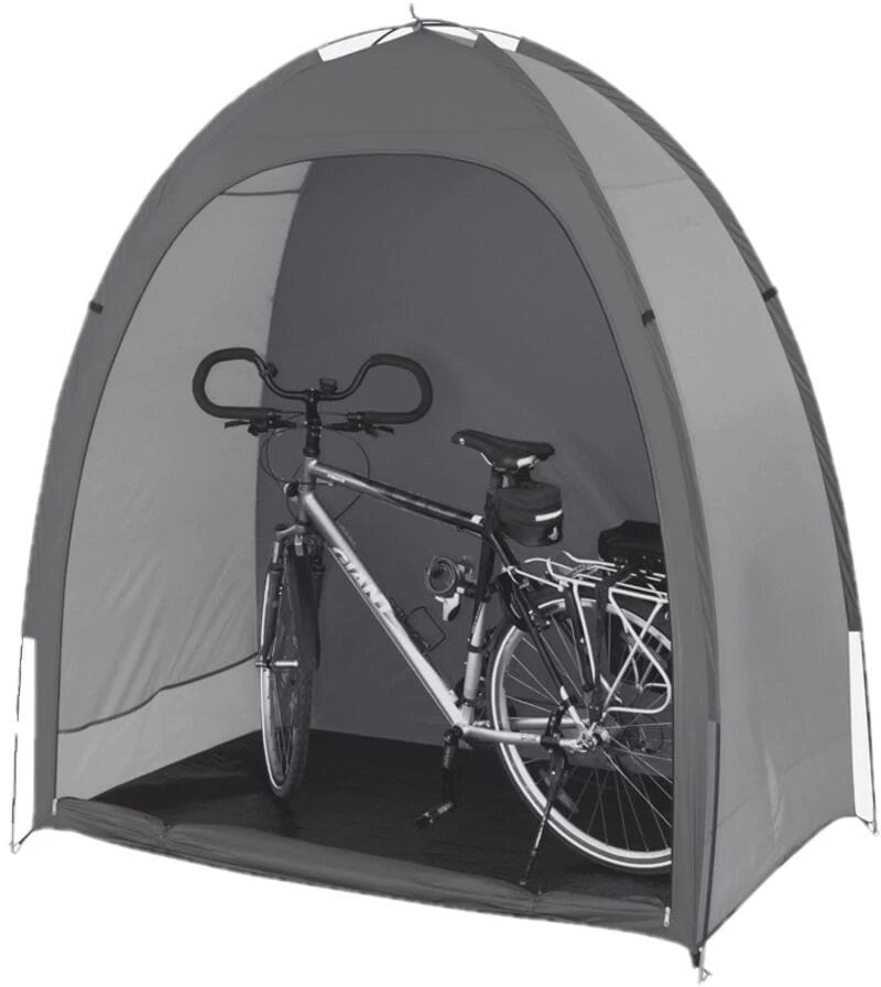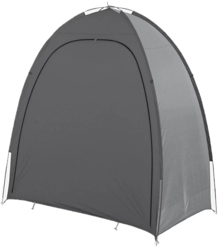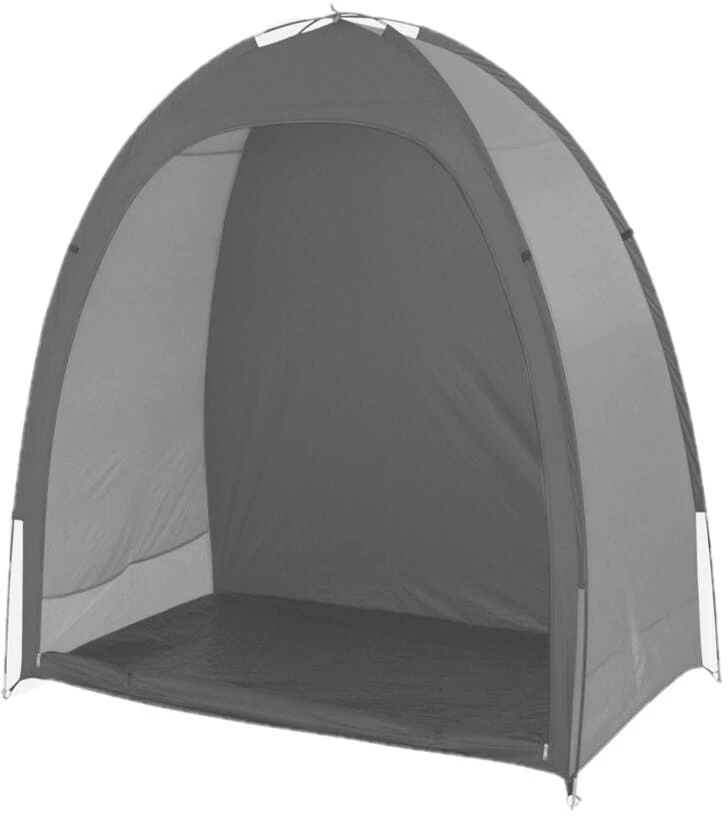 Solides Aufbewahrungszelt zum Schutz gegen Regen. Sehr stabiles Zelt durch gekreuzte Bogenstangen. Vollständig verschließbar und mit getapten Nähten verstehen. Inklusive Transporthülle, Spannleinen und Heringe. Ideal geeignet als Fahrradunterstand.