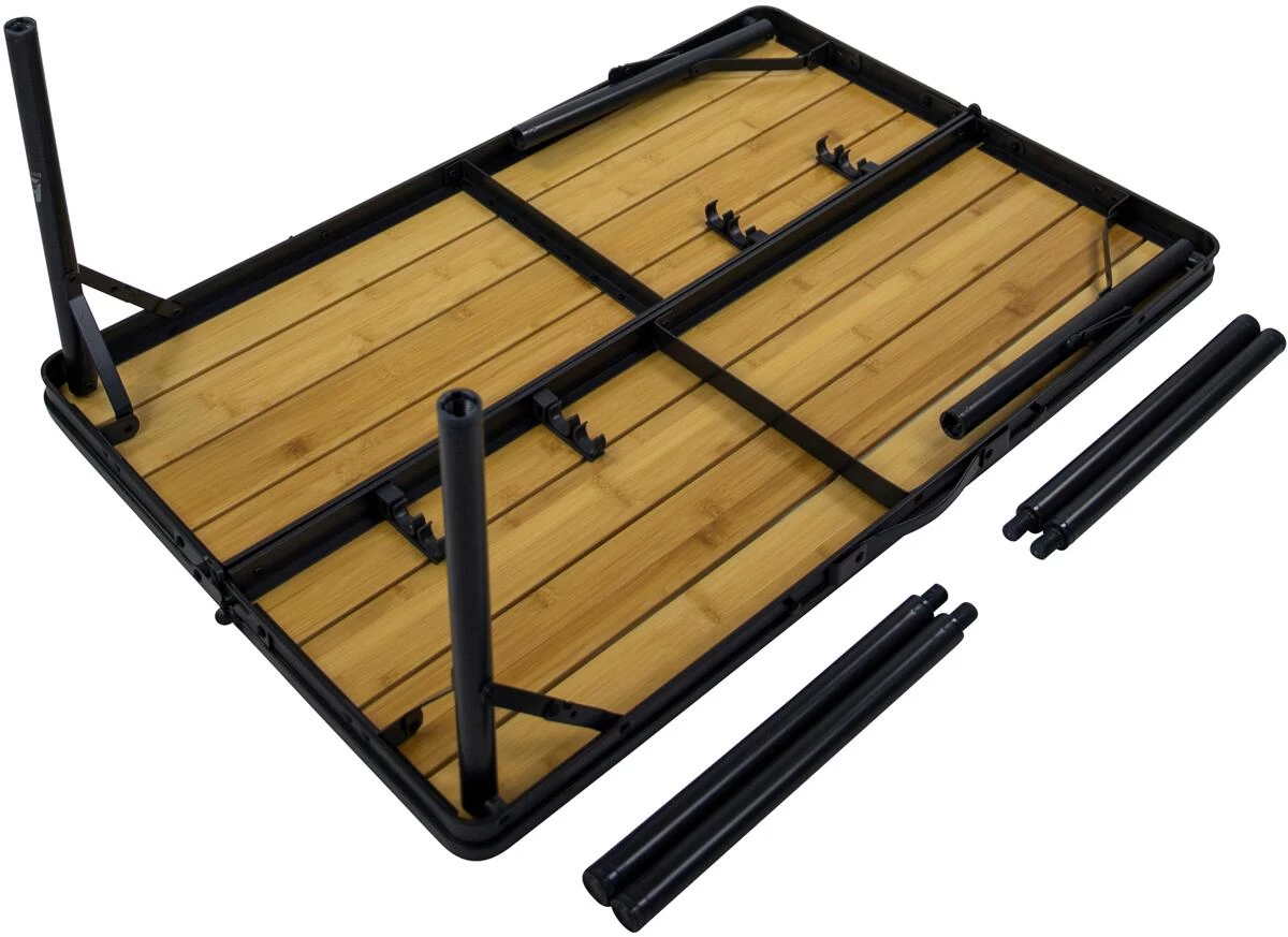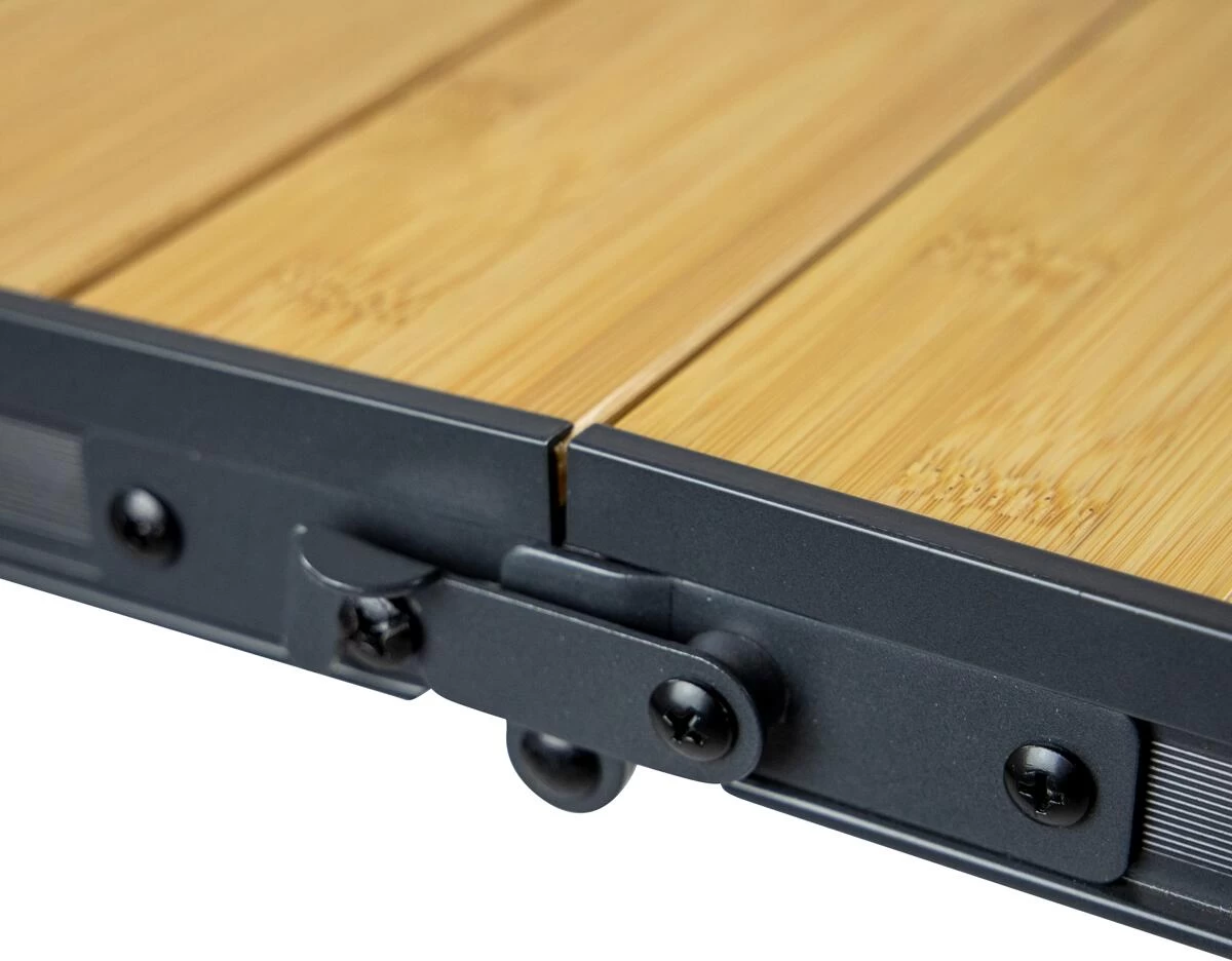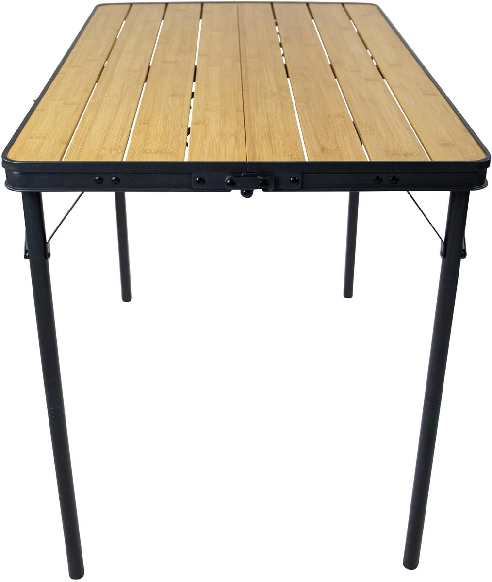 Ein kompakter und stilvoller Tisch aus der Urban Outdoor Kollektion. Dieser wasserdichte Tisch hat ein Aluminiumgestell mit einer Bambusplatte. Dank der klappbaren Beine und der teilbaren Platte lässt sich der Tisch sehr kompakt zusammenlegen. Außerdem befindet sich an der Seite des Tisches ein Griff, der das Tragen erleichtert. Der Tisch ist in der Höhe verstellbar: 38/70,5 cm.
