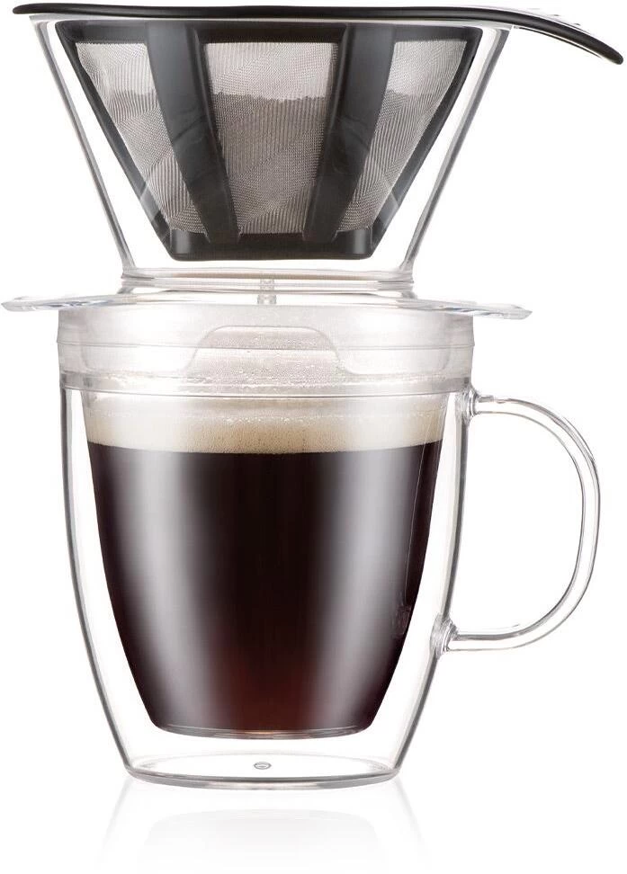 Filterkaffee ist unter Kaffeekennern für sein robustes Aroma und seinen vollmundigen, weichen Geschmack bekannt. Aber manchmal braucht man nur eine einzige Tasse Kaffee und möchte deshalb vielleicht nicht eine ganze Kanne aufbrühen. In solchen Fällen sollte man nach dem POUR OVER Kaffeebereiter mit doppelwandigem Becher von Bodum greifen. Dieses raffinierte kleine Spielzeug eignet sich perfekt, um eine einzige Tasse Kaffee mit maximalem Geschmack und ohne Verschwendung aufzubrühen. Der Kaffee wird im Kaffeebereiter mithilfe eines wiederverwendbaren Kaffeefilterkegels gebrüht – die gleiche Methode wie bei unseren gefeierten Filterkaffee-Bereitern. Der einzige Unterschied besteht darin, dass der Kaffee direkt in den doppelwandigen Becher fließt und sofort trinkfertig ist. Diese Methode der Kaffeezubereitung ist nicht nur unkompliziert, sondern auch leicht zu transportieren, da sowohl der Kaffeebereiter als auch der doppelwandige Becher bruchsicher sind und somit im Gepäck mitgeführt werden können.