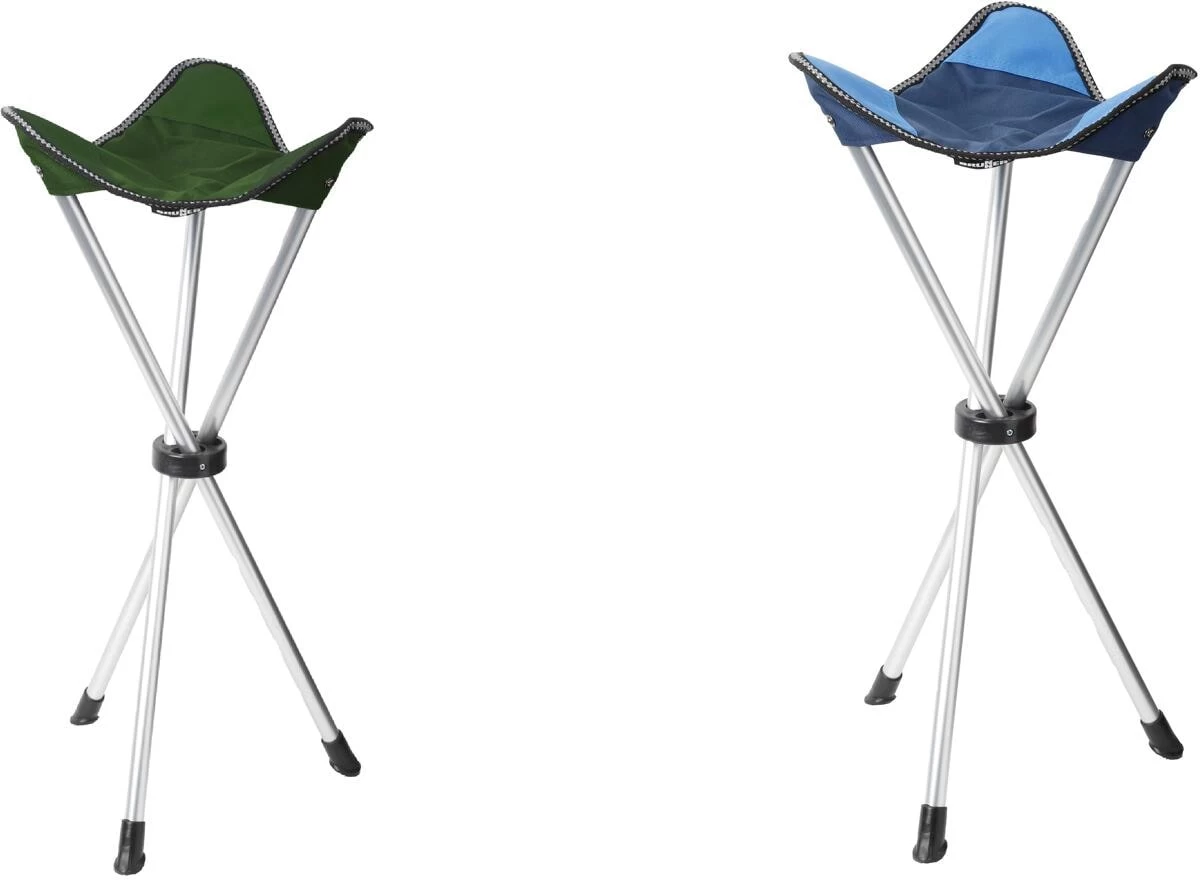 Dreibeinhocker mit klappbarem Gestell aus eloxiertem Aluminium Ø 19 mm.