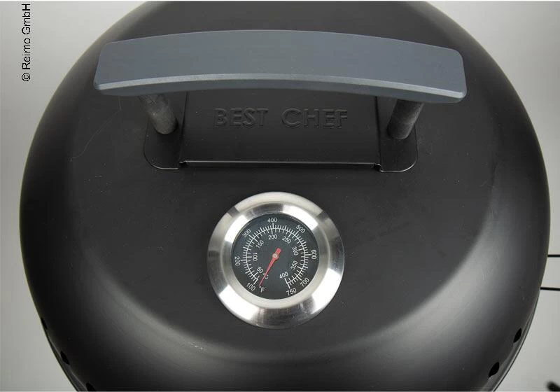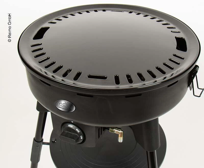 Gasgrill mit 3 höhenverstellbaren Metallbeinen und Kunststoff-Standfüßen. Bequeme Arbeitshöhe, 67/98cm. Kann ohne Metallbeine auch als Tischgrill verwendet werden.