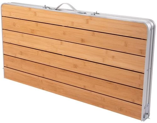 Der Bambus-Tisch kombiniert natürliche Schönheit mit modernen Design – Ihr Nachbar auf dem Campingplatz wird Sie beneiden. Der Tisch ist zum Transport kompakt zusammengelegt und leicht zu tragen, aber aufgebaut äußerst stabil. Für Picknick und Camping ideal geeignet.