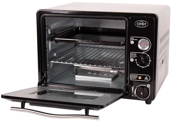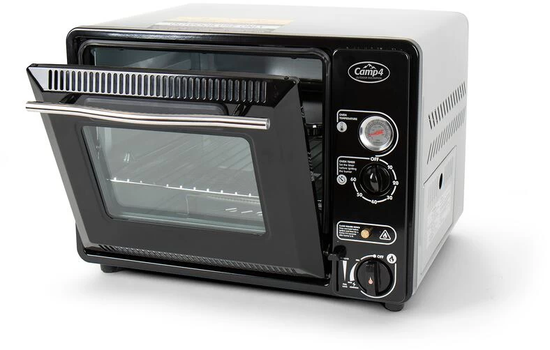Der Mini-Gasofen wird mit einer Standard-Gas-Stechkartusche verwendet und ist mit einer Piezo-Zündung versehen. Einen eingebauten Wärmemesser zur Überwachung der Innentemperatur sowie eine Temperaturbegrenzungsvorrichtung bis 280℃ besitzt der Mini-Gasofen ebenfalls. Zudem sind Sicherheitsvorrichtungen zum Schutz vor Flammenausbruch oder vor falschem Einlegen der Kartusche mit integriert. Der Mini-Gasofen schafft pro Kartusche bis zu 180 Minuten Backzeit.