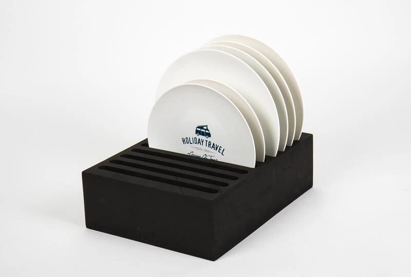 Der Tellerhalter aus Schaumstoff (EVA) vermindert das Klappern der Teller beim Fahren. Geeignet für Teller bis Ø23cm H1,5cm.