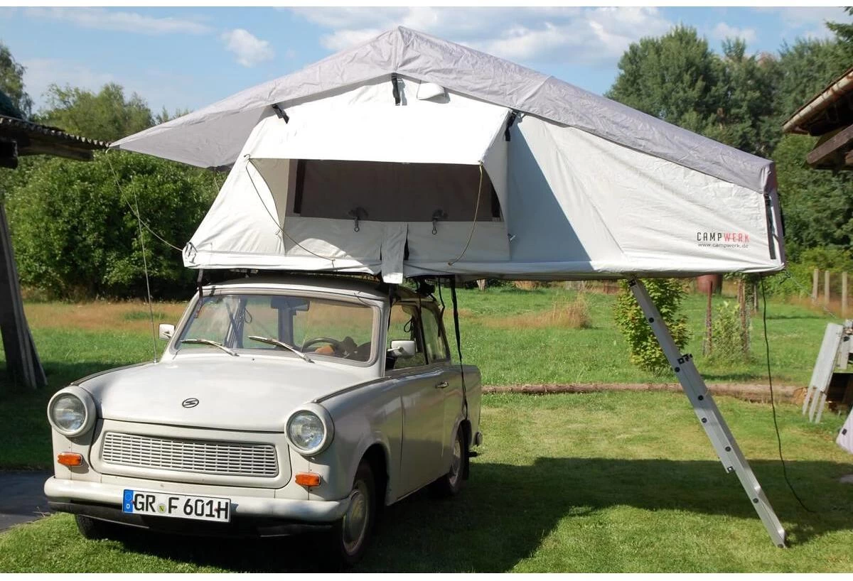 Das Dachzelt kann auf fast jedes Auto ganz einfach montiert werden. Man benötigt lediglich 2 Querstreben/Lastenträger worauf das Dachzelt mit den mitgelieferten U-Schrauben befestigt wird. Eine Montage DIREKT an einer Dachreling wird nicht empfohlen, da der Abstand zum Dach sehr gering wäre und die U-Schrauben Kratzer verursachen könnten. Man benötigt also auch bei einer vorhandenen Dachreling auch Querstreben/Lastenträger. Bezüglich der Dachlast, muss man sich ebenfalls keine Sorgen machen. Bei den meisten Fahrzeugen liegt die Dachlast zwischen 75-100 kg. Mit einem Gewicht von 60 kg liegt das Adventure Dachzelt also voll im Rahmen. Diese Angabe bezieht sich ohnehin nur auf die Belastung während des Fahrbetriebs. Im Stand darf das Gewicht deutlich höher sein. Starte also in dein nächstes Abenteuer mit dem CAMPWERK Adventure Dachzelt!