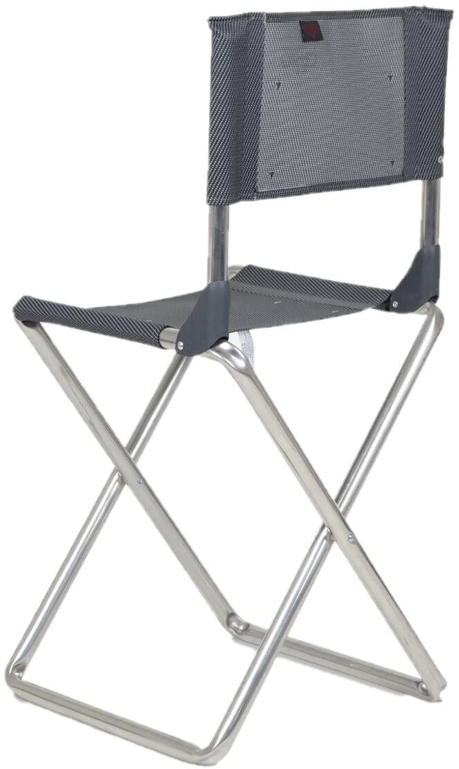 Ein sehr kompakter und stabiler Hocker mit einklappbarer Rückenlehne. Ideal zum Angeln oder für unterwegs. Einfach einzuklappen und platzsparend zu verstauen. Sitzhöhe: 47 cm. Sitzbreite: 37 cm. Sitztiefe: 28 cm. Rückenlänge: 34 cm. Max. Belastbarkeit: 90 kg.