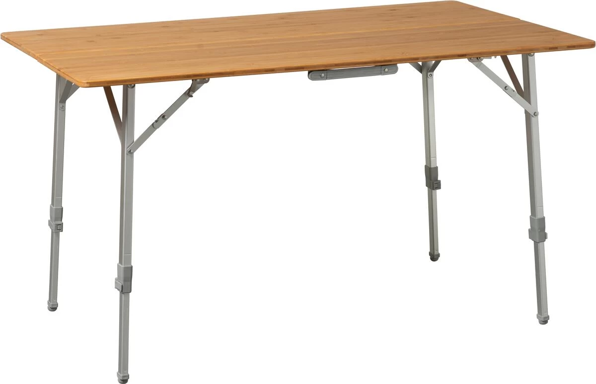 Der Campingtisch mit einer Bambustischplatte ist der perfekte und praktische Begleiter beim Campingurlaub. Mit den verstellbaren Tischbeinen kann der Tisch an die Begebenheiten angepasst werden. Der Tisch kann leicht in der Tragetasche aus Polyester transportiert werden.