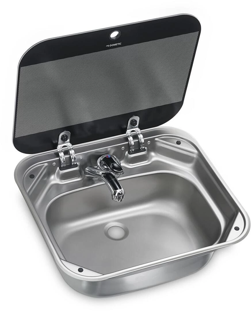 Die Dometic SNG 4237 Edelstahlspüle (Modell VA8000) ist dafür ausgelegt, den verfügbaren Raum optimal auszunutzen. Sie ist mit einer nützlichen Abdeckung aus temperaturbeständigem Sicherheitsglas ausgestattet. Heruntergeklappt verwandelt sie die Spüle in eine praktische Arbeitsfläche. Wasserhähne sind separat erhältlich.