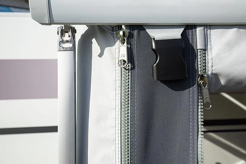 - Das Grundelement kann über Reißverschluss-Verbindungen mit den Erweiterungssegmenten auf das gewünschte Maß (Länge=Markisenbezeichnung) angepasst werden.
