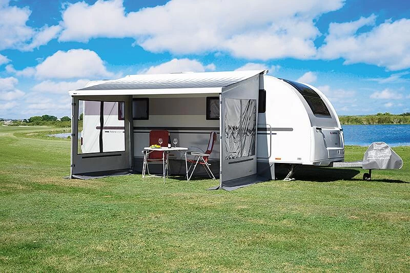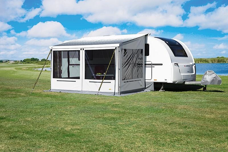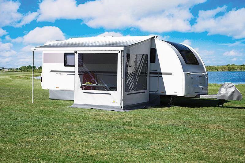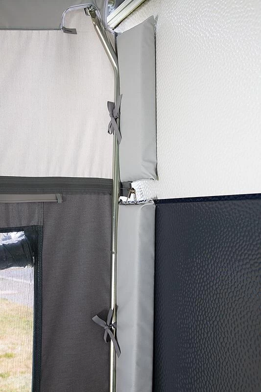 - Die Vorderwandteile können über Keder in die Kederschiene des Markisen-Ausfallprofils eingezogen werden
