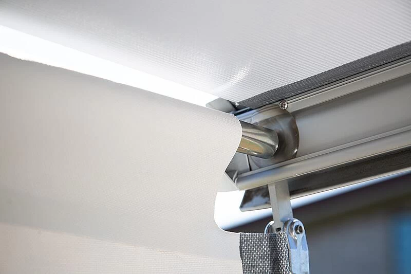 - Die Seitenwände werden über eine Spannstange zwischen Markisenkasten und Ausfallprofil gespannt.