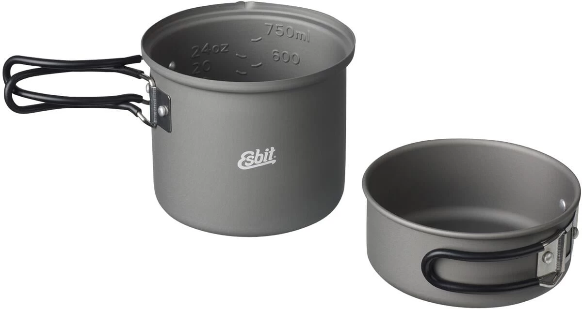 Für Touren in Begleitung oder den größeren Hunger ist er unverzichtbar: Der große Esbit Topf mit seinem Fassungsvermögen von ca. 1 Liter. Dieser Topf aus hartanodisiertem Aluminium ist mehr als nur ein Topf. Er ist sogar zwei Töpfe! Zumindest wenn Sie es wollen. Denn der Deckel des großen Topfes lässt sich ebenfalls als Topf verwenden.