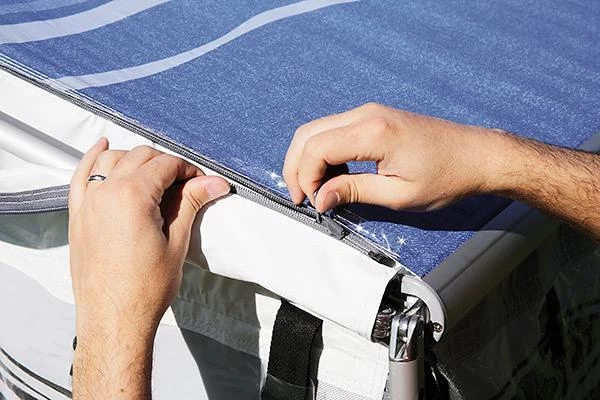 Markise:die Caravanstore ZIP basiert auf der Fiamma Caravanstore. Das Tuch hat das Reißverschlusssystem ZIP für eine einfache und schnelle Anbringung.