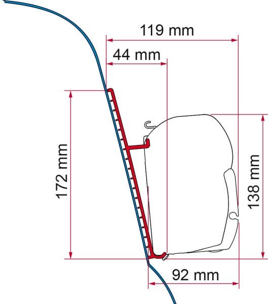 Markisenhalterung zur Montage der Markise am Fahrzeug (Reisemobil, Caravan, Kastenwagen oder Camping-Bus)