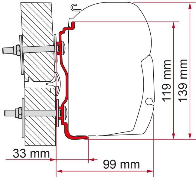 Markisenhalterung zur Montage der Markise am Fahrzeug (Reisemobil, Caravan, Kastenwagen oder Camping-Bus)