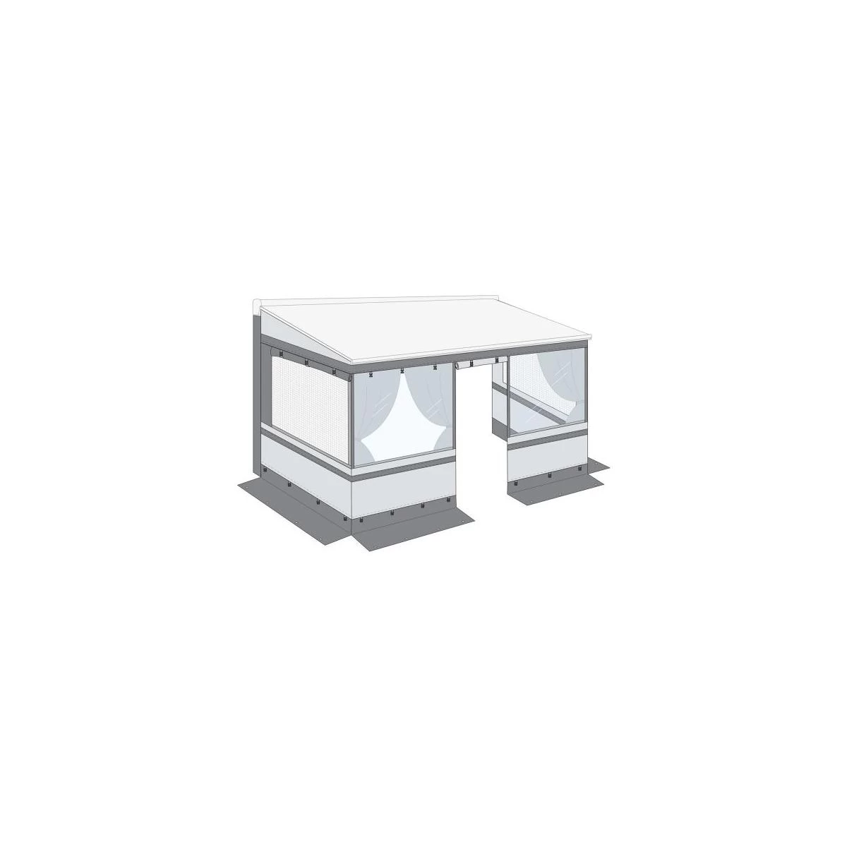Die kompakte und leichte Privacy Lösung für die Caravanstore und F35 Pro Markise. Einfache und schnelle Anbringung. Die Seitenfenster, welche geöffnet werden können, sind mit Moskitonetzen versehen. Das Vorderteil mit aufrollbarem Fenster und Moskitonetz wird einfach in die Kederschiene der Rolle eingezogen und mittels Reißverschlüssen ganz einfach mit den Seitenteilen verbunden.