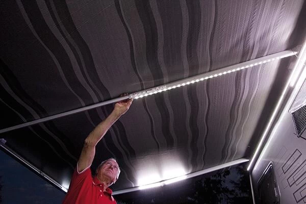 Passend für Gelenkarm-Markisen mit einem Auszug bis 250 cm.Der Betrieb erfolgt durch die im Vorausfest eingebaute obere Halterungmit den Steckverbindungen. Erfordert keine Bohrung für den Kabelverlauf. Serienmässig mit 5 m langem Kabel mit Stecker zum Anschließen am 12 V-Zigarettenanzünder.