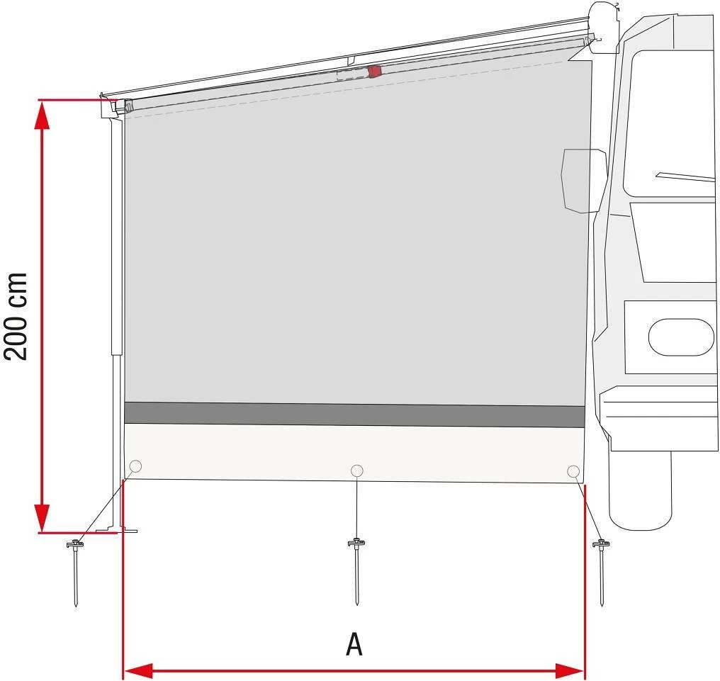 - Sun View Side Caravanstore / F35 Länge A: 210 cm Höhe vom Boden: 180 – 260 cm