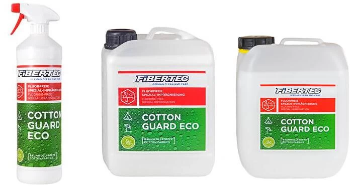Cotton Guard Eco ist eine umweltfreundliche, fluorfreie Spezialimprägnierung mit natürlich abbaubaren Wirkstoffen. Sie eignet sich für Pfadfinderzelte, Jurten, Mittelalter-Marktstände, Faltboothäute, Sonnenschirme, Sonnensegel und andere Produkte aus Baumwollstoffen. Es wirkt stark wasserabweisend und lässt sich sehr leicht verarbeiten. Die wässrige Imprägnieremulsion aktiviert sich durch Trocknung bei Raumtemperatur. Eine anschließende Wärmebehandlung ist nicht notwendig.