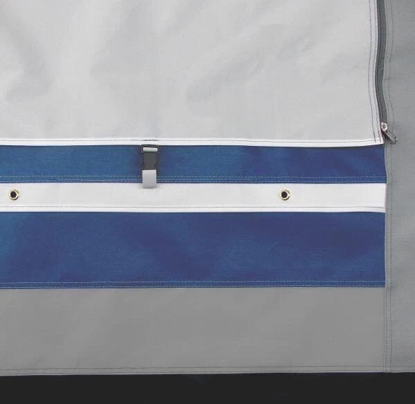 Das 7-teilige Vorzelt, ideal für den Dauercamper, zeichnet sich durch eine umfangreiche Ausstattung und hervorragende Verarbeitung aus. Der Planenstoff ist abwaschbar und somit pflegeleicht. Dieses Vorzelt aus der Frankana Freiko Zeltkollektion inklusive Gestänge ist super funktionell und durchdacht. Vorderwand aus 4 Teilen bestehend, herausnehmbar und zur Veranda abrollbar. Tür hochrollbar. Mit Sturmlaschen innen, Sturmabspannleiste außen und abgedeckten Reißverschlüssen. Außenklappen aus Planenstoff. Seitenwände komplett herausnehmbar. Gaze/Folienfenster mit Folienklappe und Außenklappe aus Planenstoff. Die Tür ist seitlich wegrollbar. Mit abgedeckten Reißverschlüssen. Dach aus einem Stück gefertigt. Dachkeder mit Gewebeummantelung für schraubenloses Haltesystem (SHS-System). Überschweißte Giebelnaht, verstärkte Ösen und abgedeckte Giebellüftung. Hohlsaumlaschen im Vordach. 30 cm umlaufender Dachüberstand. Material: Vorderwand, Seitenwände und Dach aus abwaschbarem und pflegeleichtem PVC-Planenstoff. Gestänge: ø 25 mm Stahlgestänge, bestehend aus: 5 Dachstangen, 5 Stützstangen, Gestänge für den Dachüberstand. Ab Größe 17 empfehlen wir zusätzlich 2 Dachhakenstangen (610/113) und 2 Orkanstützen (610/044).