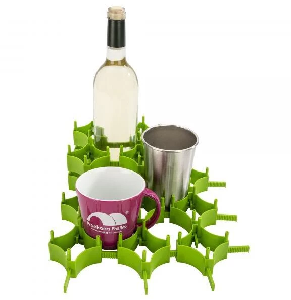 Ob Gläser, Kaffeebecher, Flaschen oder Besteck: Der Froli Alleshalter hält wirklich alles an seinem Platz. Ganz ohne Rutschen und Scheppern. Der Bausatz besteht aus 16 Kunststoff-Waben, die sich beliebig zusammenstecken lassen.
