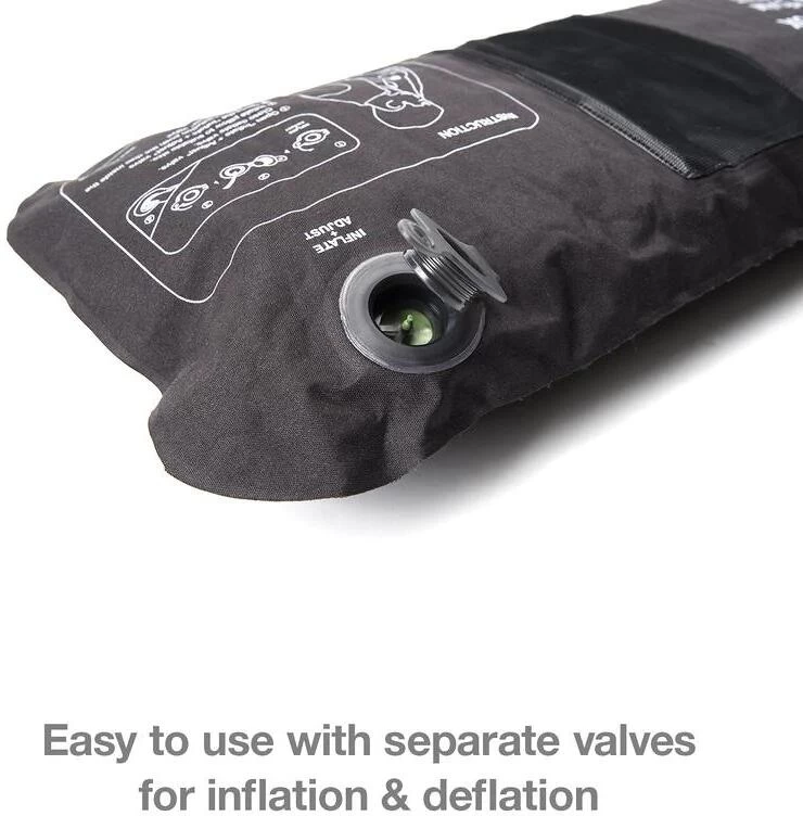 Das aufblasbare Kissen stützt den Kopf und sorgt für mehr Komfort bei allen Outdoor-Abenteuern.