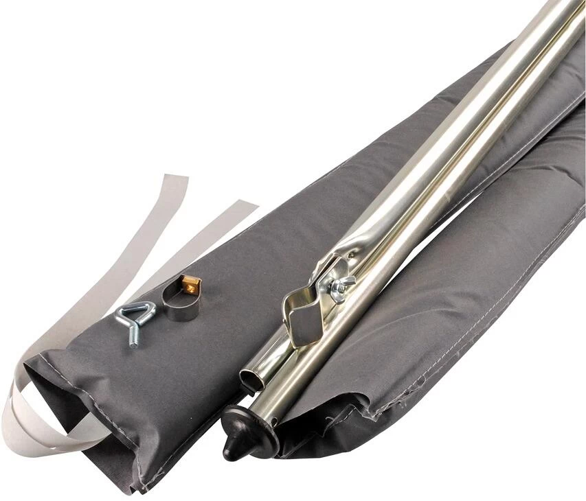 Winterpaket für die Winterzelte Kaprun und Zürich. Die Andruckstangen mit dem Polster drücken das Zelt an die Wohnwagenwand für eine bessere Isolierung.