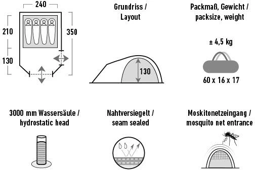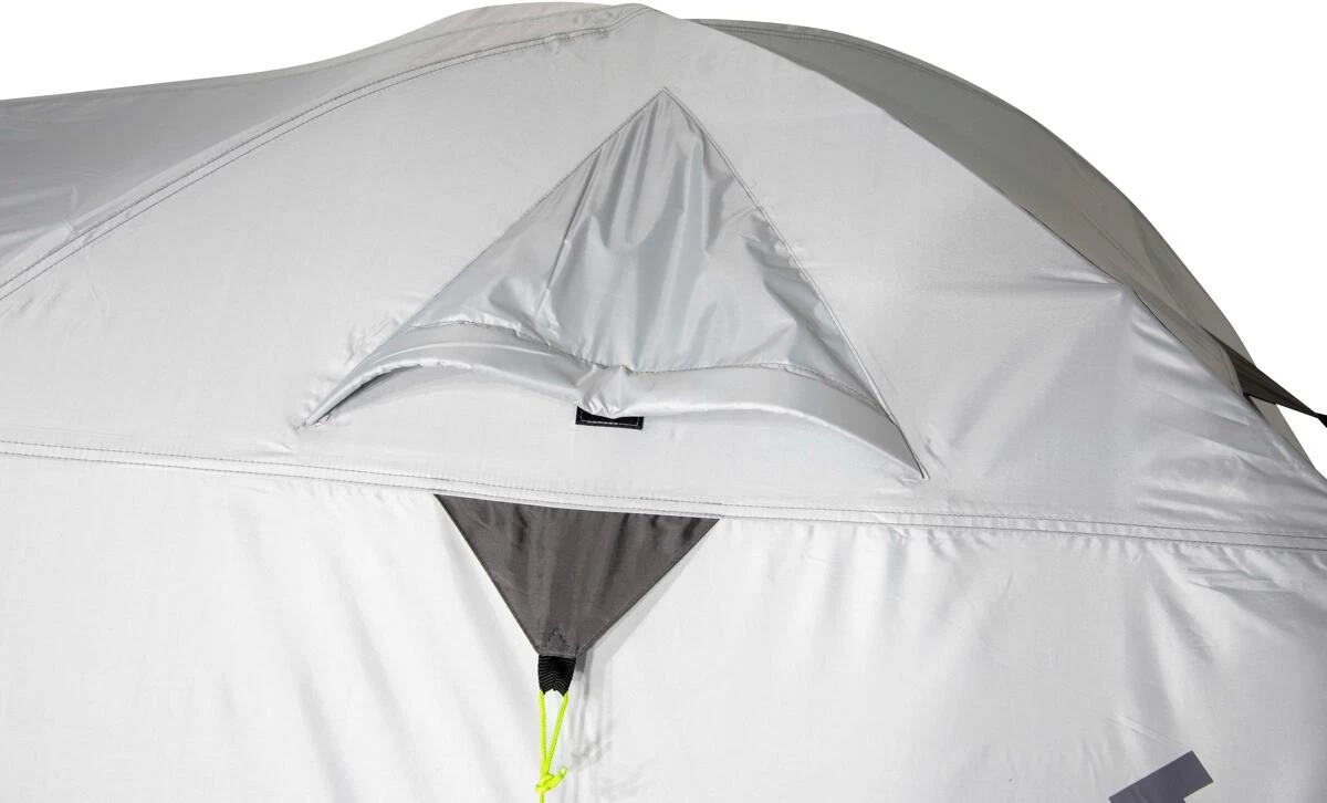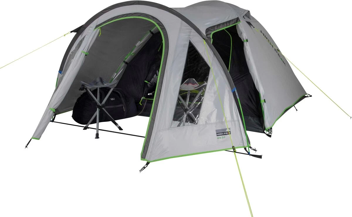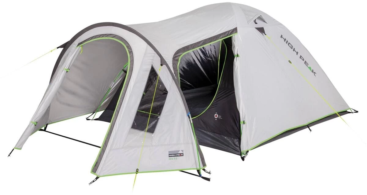Das High Peak 4-Personen-Kuppelzelt Kira 4.0 bietet einen wettergeschützten Vorraum mit zwei Eingängen und sorgt für einen trockenen Schlafraum, auch bei Schlechtwetterperioden. Der große Vorbau bietet Klarsichtfolienfenster und hat einen Seiteneingang, das sorgt für mehr Bewegungsfreiheit. Der formschöne und funktionale Eingang lässt sich bequem zur Seite rollen. Der Vorbau bietet Stauraum für reichlich Gepäck und Campingausrüstung. Die Aluminium-Beschichtung stärkt das Außenzeltgewebe, ist bis zu ca. 17% wärmereduzierend und bietet einen UV-Sonnenschutzfaktor von 80 (UV Standard 801). Die Dauerventilation belüftet das Zelt für erholsamen Schlaf, und sollte immer geöffnet sein.