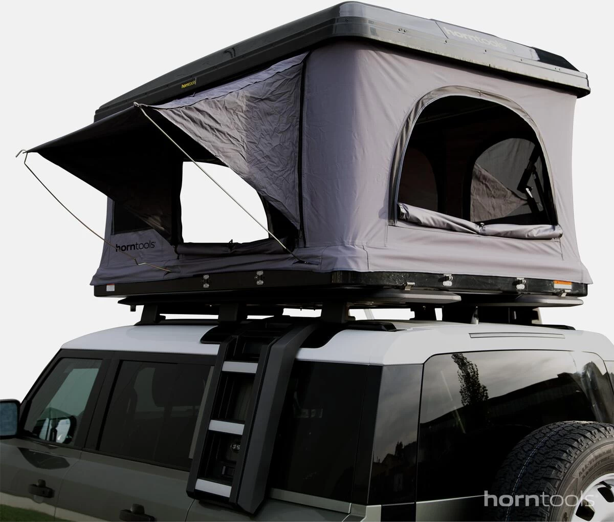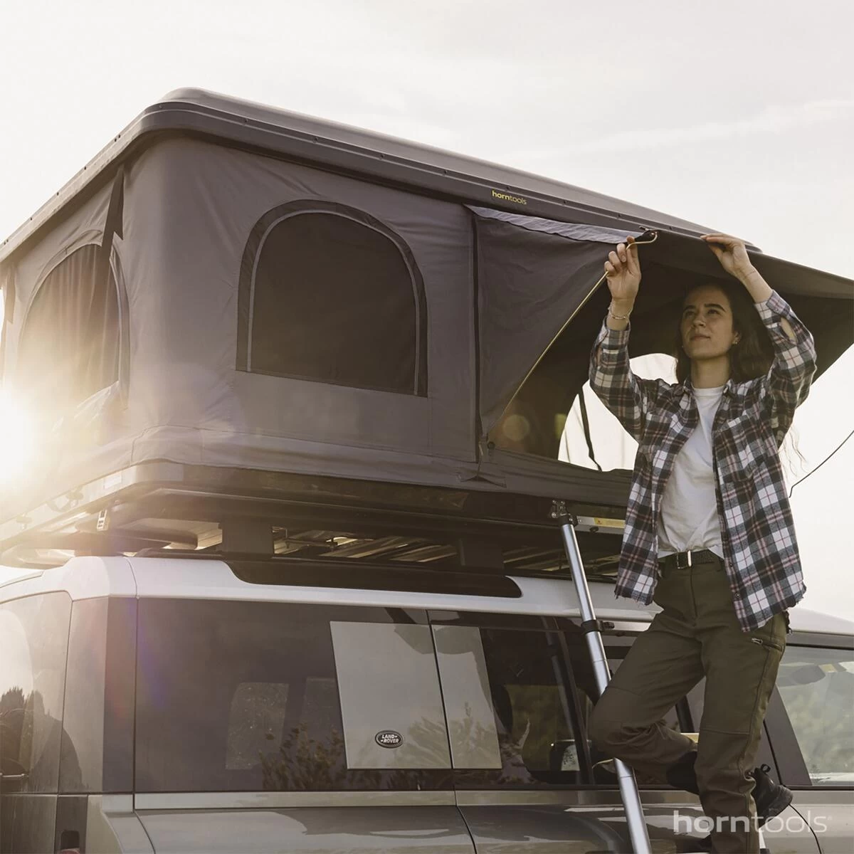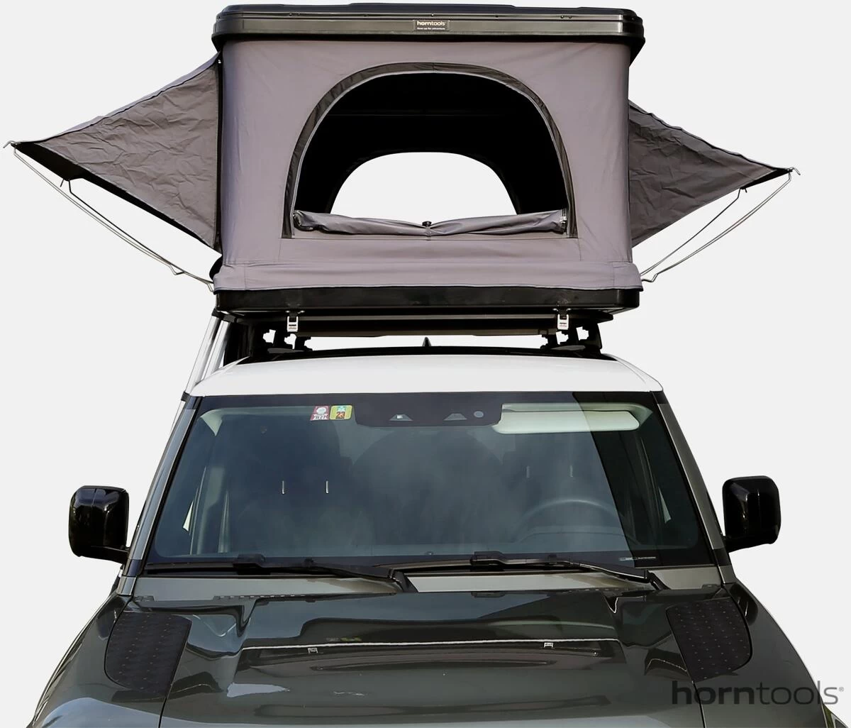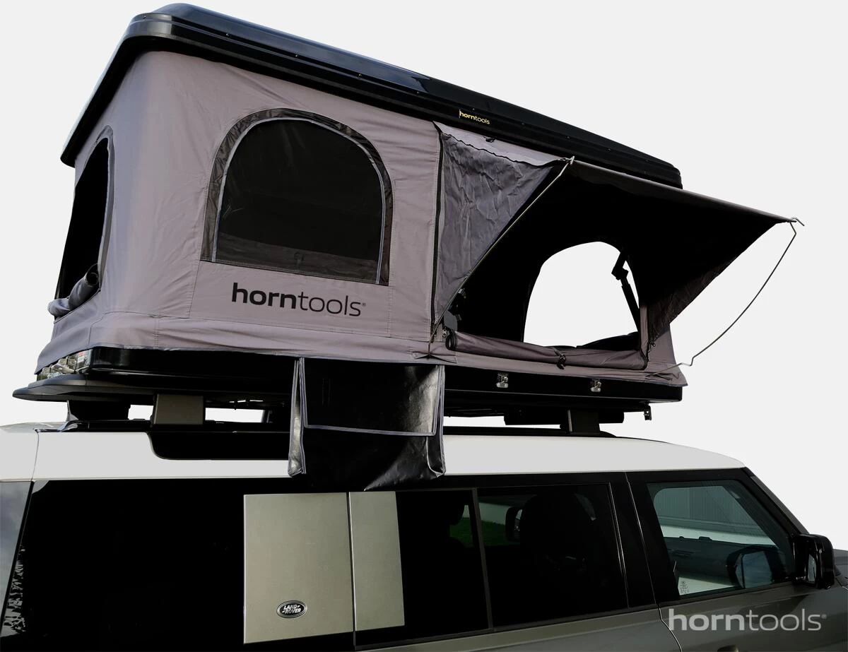 Das neue ABS Hartschalen Dachzelt aus dem Hause horntools. Mit 3 überdachten Eingängen und 3 separaten Fenstern, hast du eine tolle Aussicht und schaffst ein angenehmes Raumklima im Zelt. Der isolierte Boden und Himmel verhindern Kondenswasser.