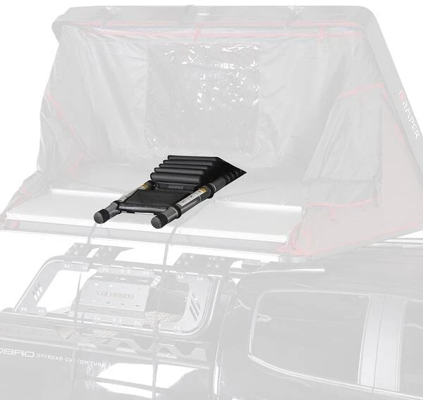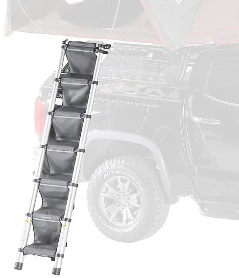 Hinweis: Die HC Steps können an der Leiter des Skycamps verbleiben wenn das Dachzelt geschlossen wird. Eine Ausnahme bildet das X-Cover. Hier werden die Steps vor dem Abbau abgenommen.