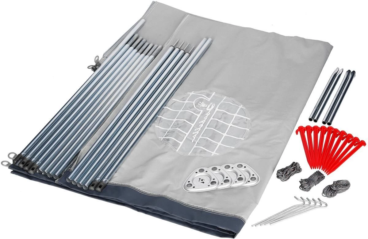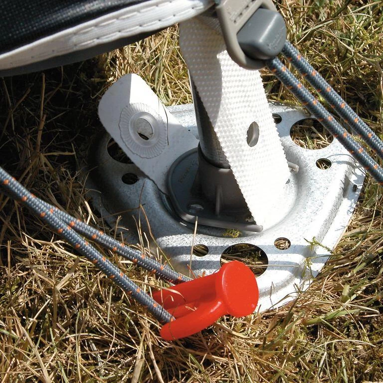 3-teiliger Windschutz mit Aufstell- und Querstangen sowie spezieller Bodenverankerung
