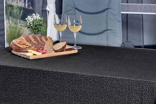 Nun können Sie den Tisch mit Ihrem Lieblingsgeschirr auf dieser cleveren Wendetischdecke mit einer einfarbigen, grauen Seite und einer gemusterten Seite decken. Das Tuch ist schmutz- und wasserabweisend. Perfekt, um Ihrem Campingdinner ein elegantes und harmonisches Flair zu verleihen.