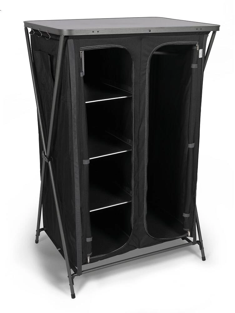Der Tilly Campingschrank ist ein kompakter und dennoch breiter Schrank. Dank seines XPRESS-Aufbausystems ist er in Sekundenschnelle einsatzbereit. Mit seiner massiven Tischplatte kann er alternativ auch als Feldküche genutzt werden. Auf einer Seite befinden sich Innenböden und auf der anderen Seite befindet sich eine Kleiderstange.