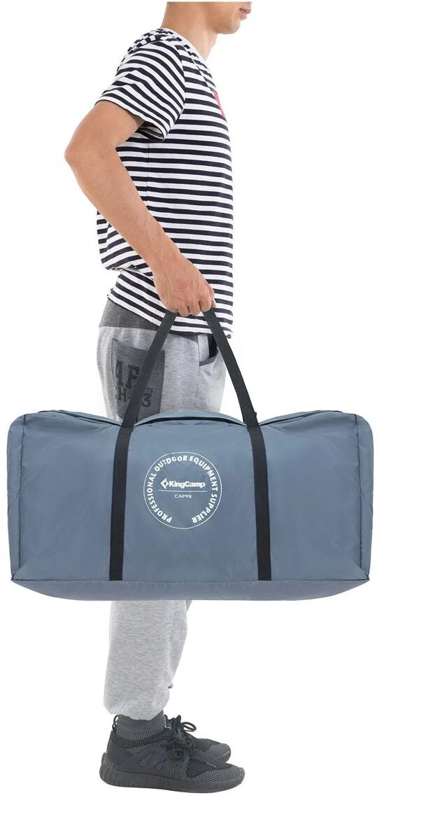 Das Modell Capri bietet ein geräumiges, freistehendes Familienzelt, welches ausreichend Platz für 4 Personen bietet. Das Zelt besitzt einen extra großen geschützten Vorraum mit Klarsicht-Fenstern (+ Gardinen) und 2 als Sonnensegel verwendbare Eingänge. In seiner Funktion als Heckzelt für Busse oder SUV verfügt das Capri über eine Schleuse, durch die jederzeit Zugriff auf den Kofferraum genommen werden kann. Das Innenzelt ist mit einem fest eingenähten Boden ausgestattet und verfügt über eine praktische Kabeldurchführung, eine Laternenaufhängung sowie platzsparende Organizer-Taschen. Die robusten Reißverschlüsse, die Nahtversiegelung sowie die PU Beschichtung mit 3000 mm Wassersäule verspricht ein komfortables Campingvergnügen. Das Zelt kann auch ohne Fahrzeug stehen bleiben und muss somit bei Ausflügen nicht zwangsläufig abgebaut werden. Die Lieferung erfolgt inklusive Aufstellstangen, Heringe, Abspannleinen und geräumiger Tragetasche.