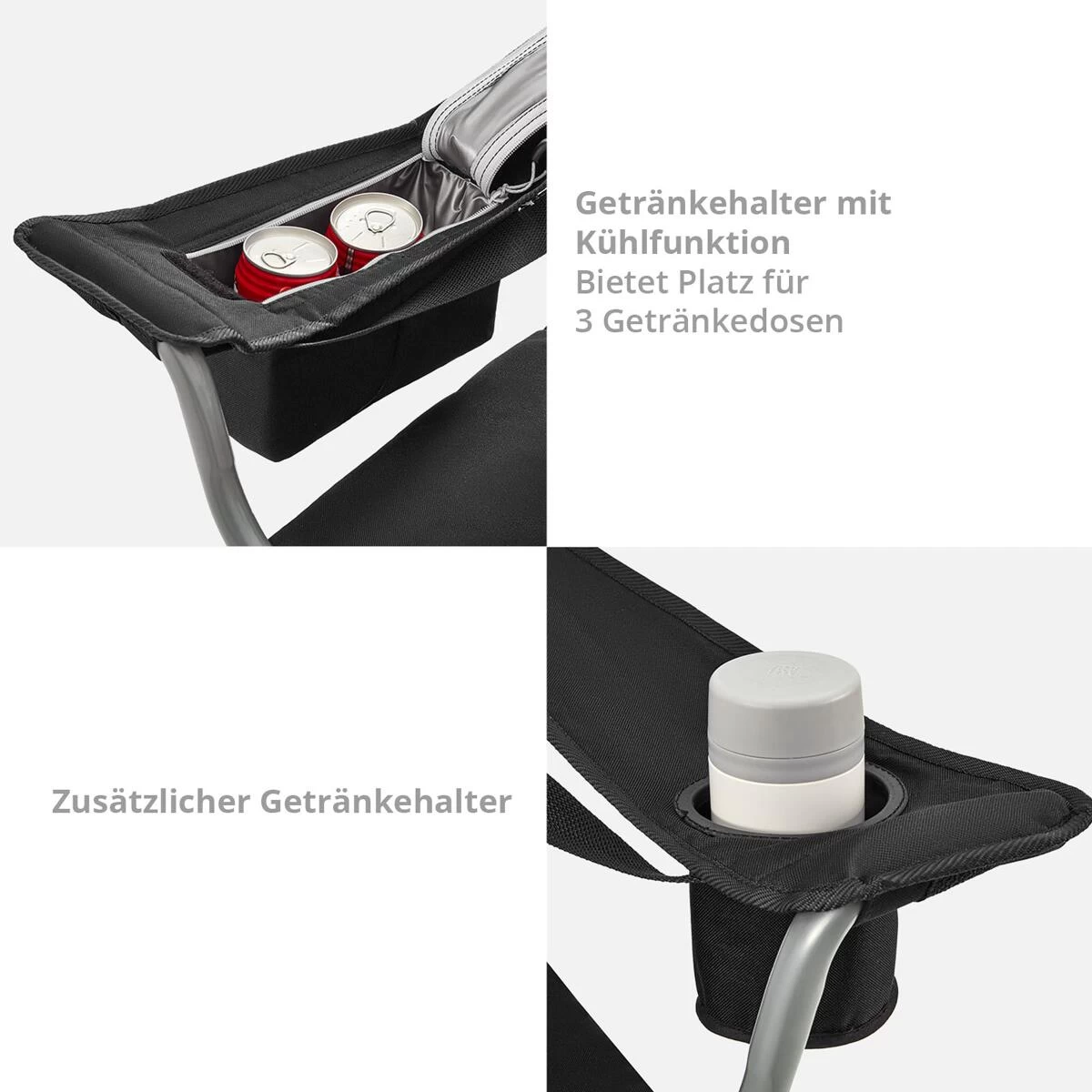- 1x Deluxe Faltstuhl mit isolierter Kühltasche, Organizer und Getränkehalter in der Armlehne