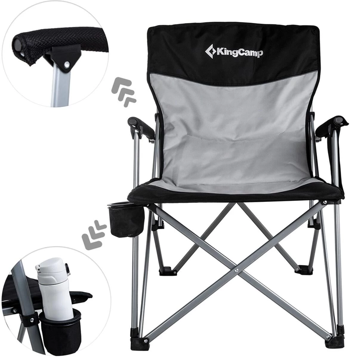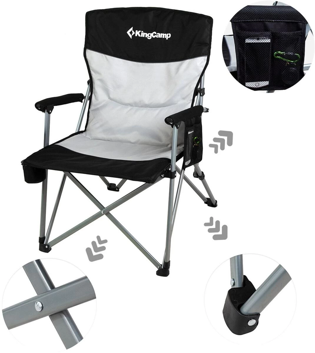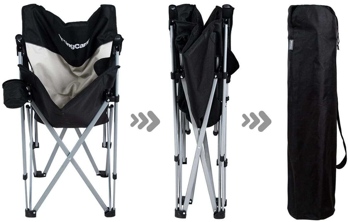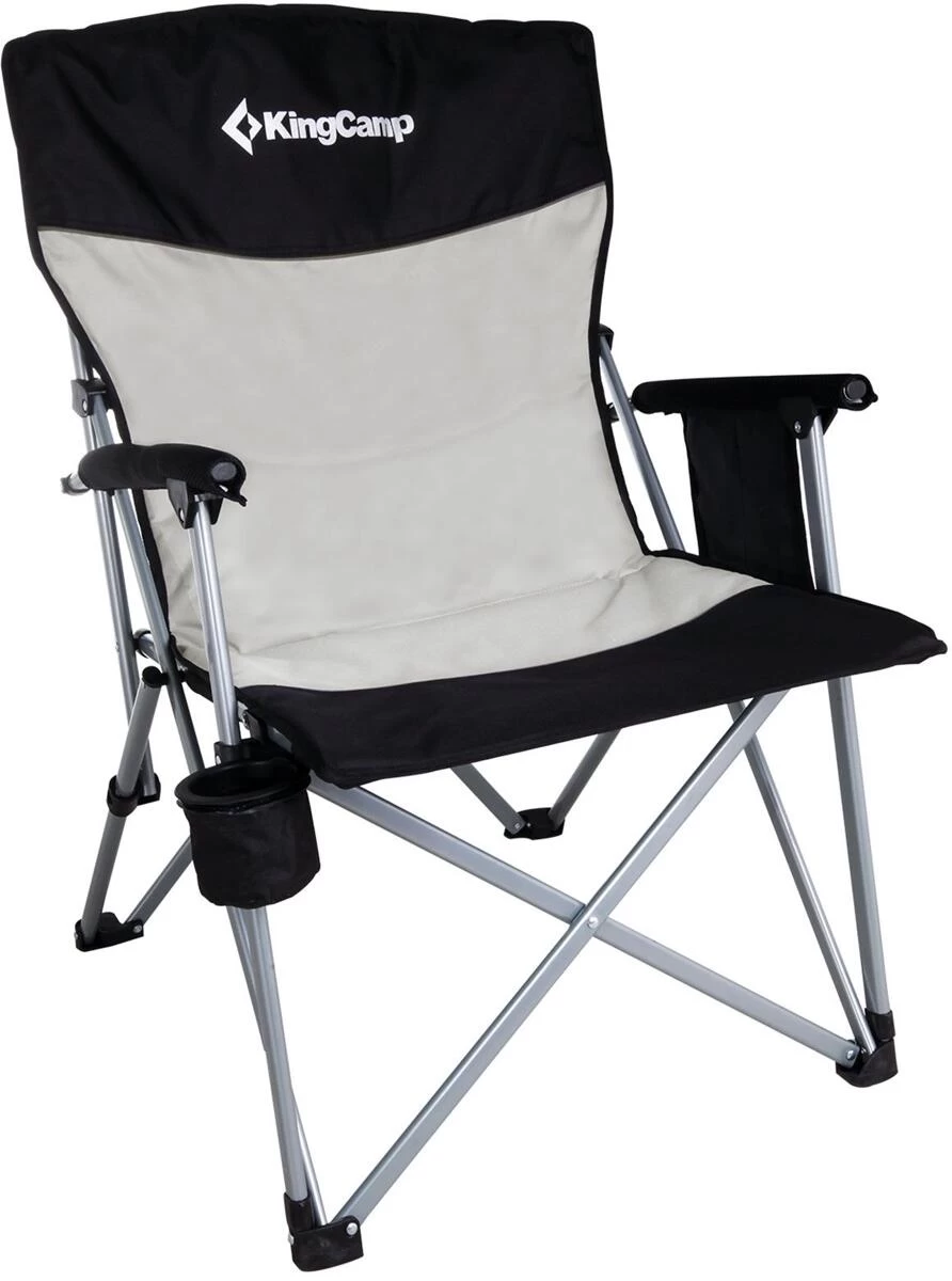 Dieser Campingstuhl ist ein ebenso komfortabler wie stabiler Begleiter für alle Gelegenheiten – ob auf dem Campingplatz, beim Angeln oder im Garten. Dank seines robusten Stahl-Gestänges verfügt der Stuhl über eine Belastbarkeit von 136 kg und ist mit seiner extra breiten Sitzfläche (53 x 59 cm) auch für größere Personen gut geeignet. Die Polsterung der Rückenlehne und der Armlehnen tragen zu einem angenehmen Sitzgefühl bei. Durch das effiziente Faltsystem ist der Stuhl kompakt faltbar und Dank der geräumigen Tragetasche lässt er sich sehr leicht transportieren. Eine Seitentasche eignet sich ideal zum Verstauen von Handy und Zubehör und der verstellbare Becherhalter dient der schnellen Erreichbarkeit kühler Getränke.