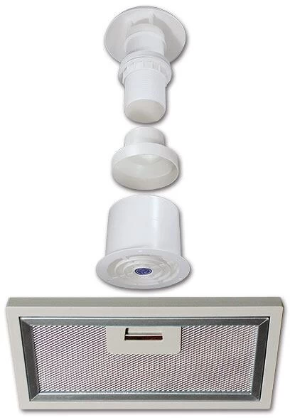 Dunstabzugshaube mit abnehmbarem und abwaschbarem Filter.