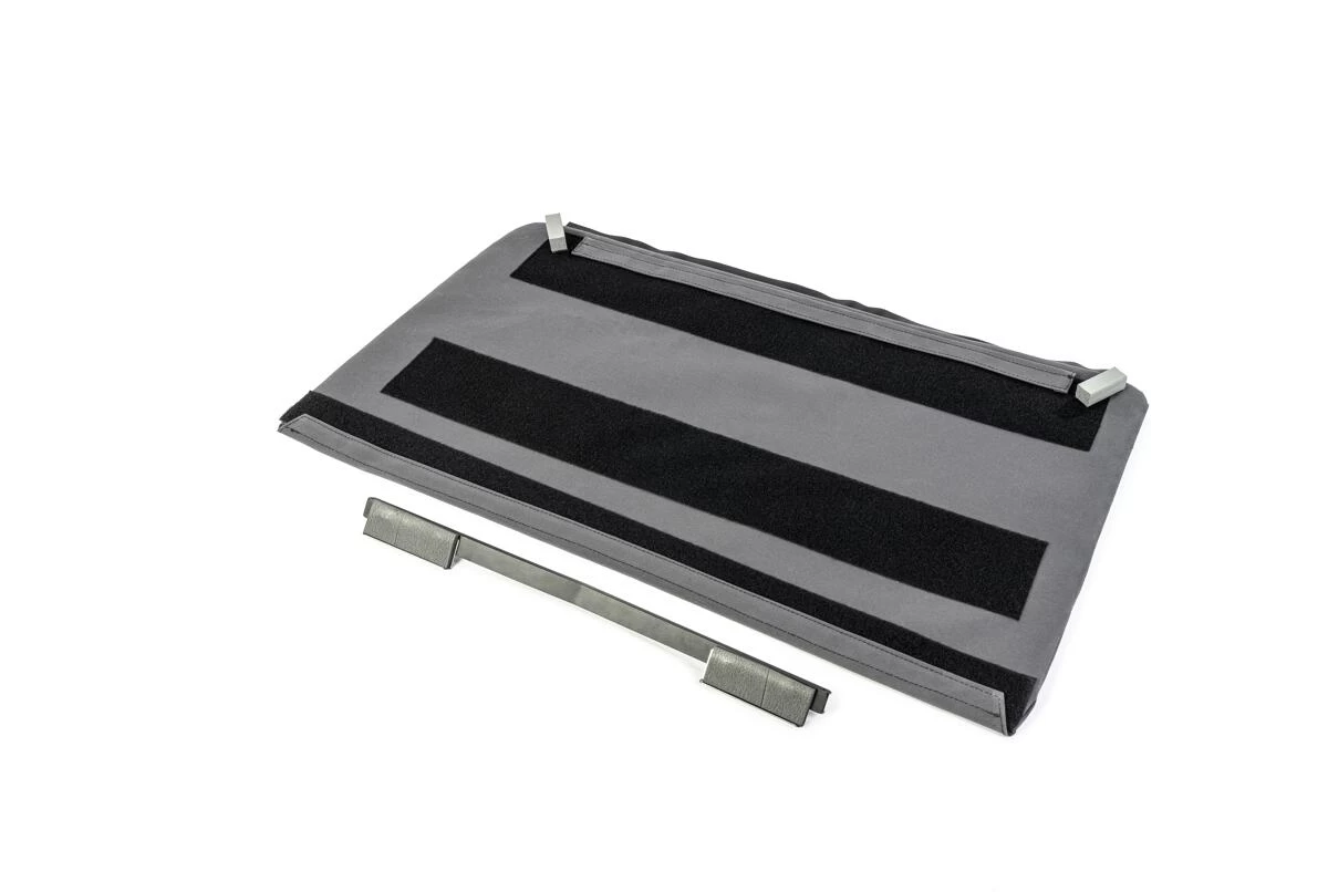 Das Befestigungspaneel ist für den Einsatz der Fensterpacktasche in Fahrzeugen mit kurzem oder langem Radstand geeignet. Das Rückwandpaneel kann ebenfalls für andere Klettutensilien verwendet werden – unabhängig der rechten und linken Seite des Autos.