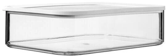 Die Frühstücksdose Modula XXL hat einen transaprenten Deckel mit weißem Dekelrand. Die rechteckige Dose mit abgerundeten Ecken hat mit 4800 ml ein großes Volumen und bietet einen direkten Blick auf den Inhallt. Der transparente Deckel mit weißem Rand und Dichtungsring sorgt für einen perfekten Verschluss der Dose. Die XXL-Frühstücksbox aus der Modula-Serie von Mepal ist ideal, um verschiedenen Brotbeläge auf einmal aus dem Kühlschrank zu holen und komplett auf den Tisch zu stellen. Einfach superpraktisch! Die Modula Vorrats- und Aufbewahrungsdosen sind in verschiedenen Größen und Ausführungen erhältlich, liegen gut in der Hand und sind leicht zu öffnen. Darüber hinaus sind die Dosen stapelbar, spülmaschinenfest und absolut BPA-frei.