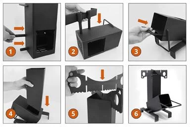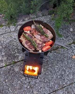 Massiver und tragbarer Raketenofen mit einzigartigen Eigenschaften! Rauchfreie, konzentrierte Flammenverteilung. Durch den Kamineffekt geht keine Wärme verloren und verkürzt dadurch die Kochzeit. Der Raketenofen ist im Handumdrehen aufgebaut und hat eine komfortable Kochhöhe. Die wendbare Topfauflage kann für einen Wok, Topf oder Pfanne verwendet werden. Er besticht durch seine kompakte Bauweise, großer Topfauflage und sicheren Stand.