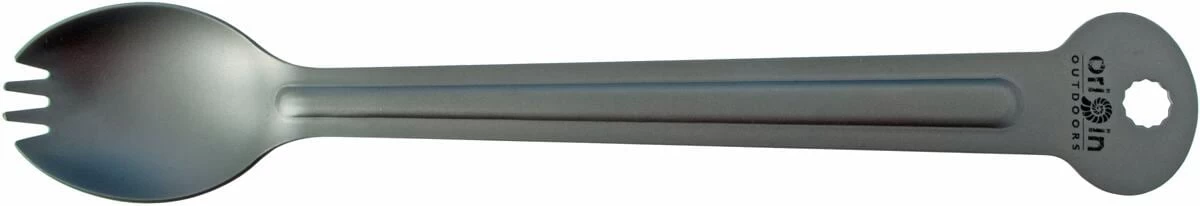 Extra langes und leichtes Universalbesteck mit Gabel, Löffel und praktischer Befestigungsöse. Der Spork aus rostfreiem Titan, besticht durch seine abgerundeten Kanten und ergonomische Form. Bestens geeignet für hohe Thermobehälter oder Reisenahrung aus der Tüte. Dank der Multifunktionalität sparen Sie zusätzliches Gewicht. Der Spork ist der perfekte Begleiter zum Reisen, Wandern und Trekking. Leicht zu reinigen und spülmaschinenfest.