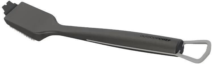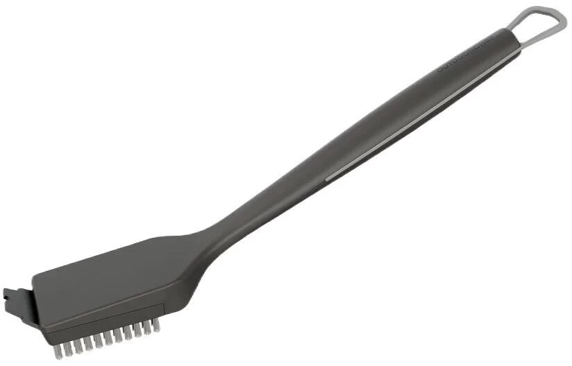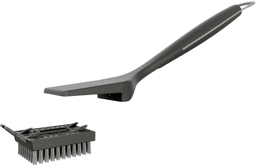Hochwertige, große Grillbürste mit strapazierfähigen Nylon-Borsten und flexiblem Silikon-Aufhänger. Mit auswechselbarem Bürstenkopf. Zur effizienten Kalt-Reinigung bei max. 120°C. Langlebiger und sicherer als Metall-Bürsten.