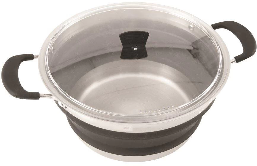 Das Collaps Topf mit Deckel lässt sich nach Gebrauch vollständig zusammenfalten und eignet sich ideal für die Zubereitung heißer Speisen. Das Sieb besteht aus bruchsicherem Material, lässt sich leicht reinigen und in kürzester Zeit zusammenfalten.