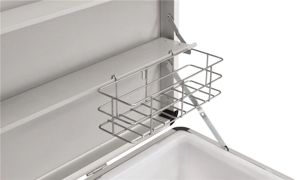 - Die robuste Tür mit Griff sorgt für einfachen nutzbaren Stauraum wie zu Hause